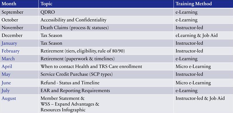 My team was tasked with identifying a way to incorporate and implement monthly trainings for each of the three departments under our division. These trainings needed to effectively cover complex topics and be used as content refreshers on a yearly basis.